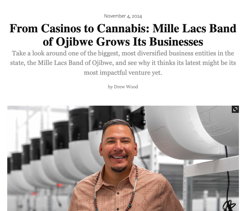 Feature in Minneapolis St Paul Magazine - Lake Leaf Cultivation - From Casinos to Cannabis: Mille Lacs Band of Ojibwe Grows Its Businesses