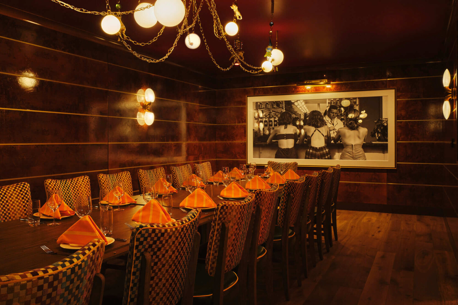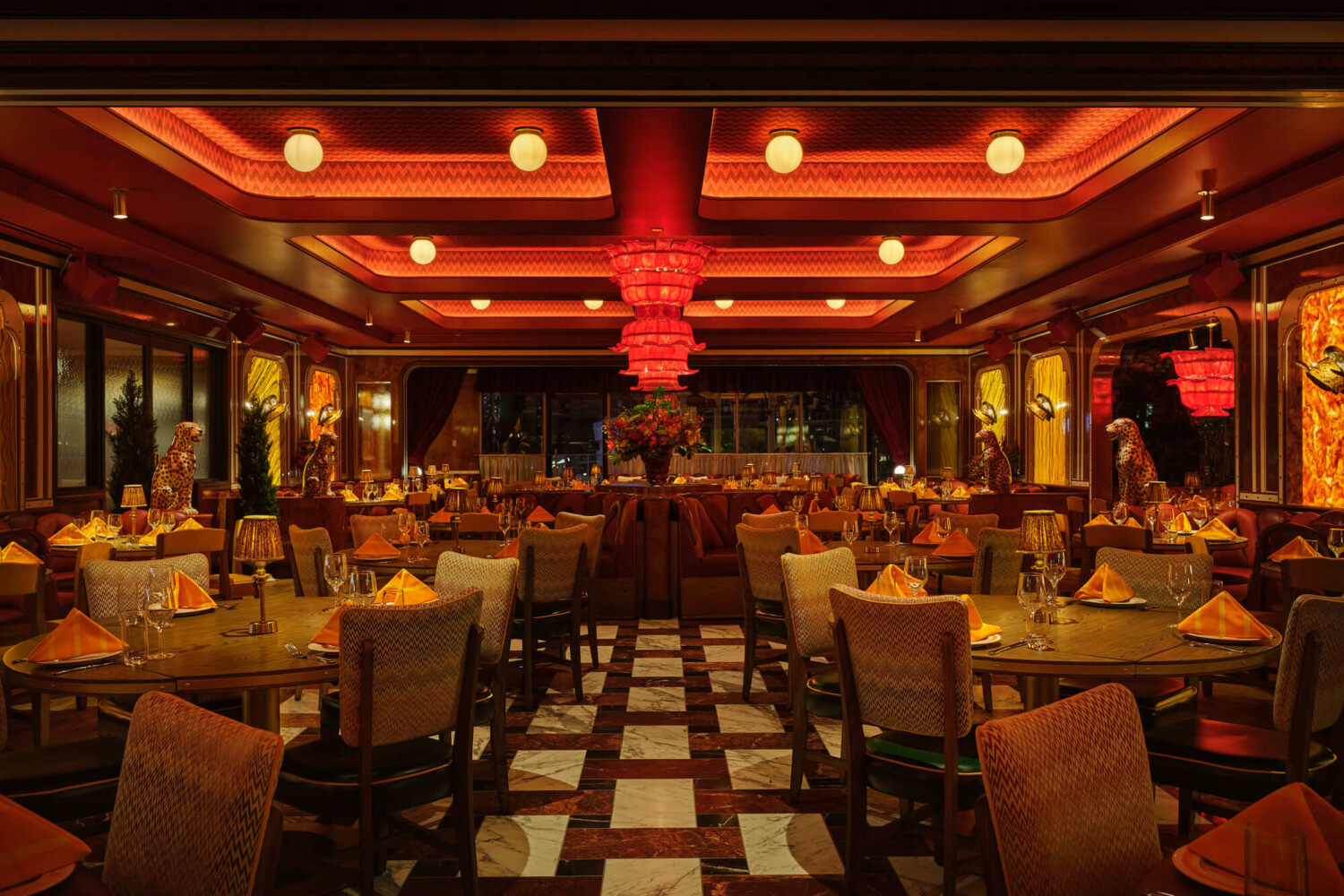 Caramella is an elegant and exciting restaurant 70s-inspired venue located at Planet Hollywood on the Las Vegas Strip. The 13,400 sf restaurant features a main dining area with a bar, and a large, open-air patio facing the Strip. It has high-end finishes throughout, warm colors and gentle lighting, with a speak easy lounge that has a candy and desert shop as its hidden entrance.