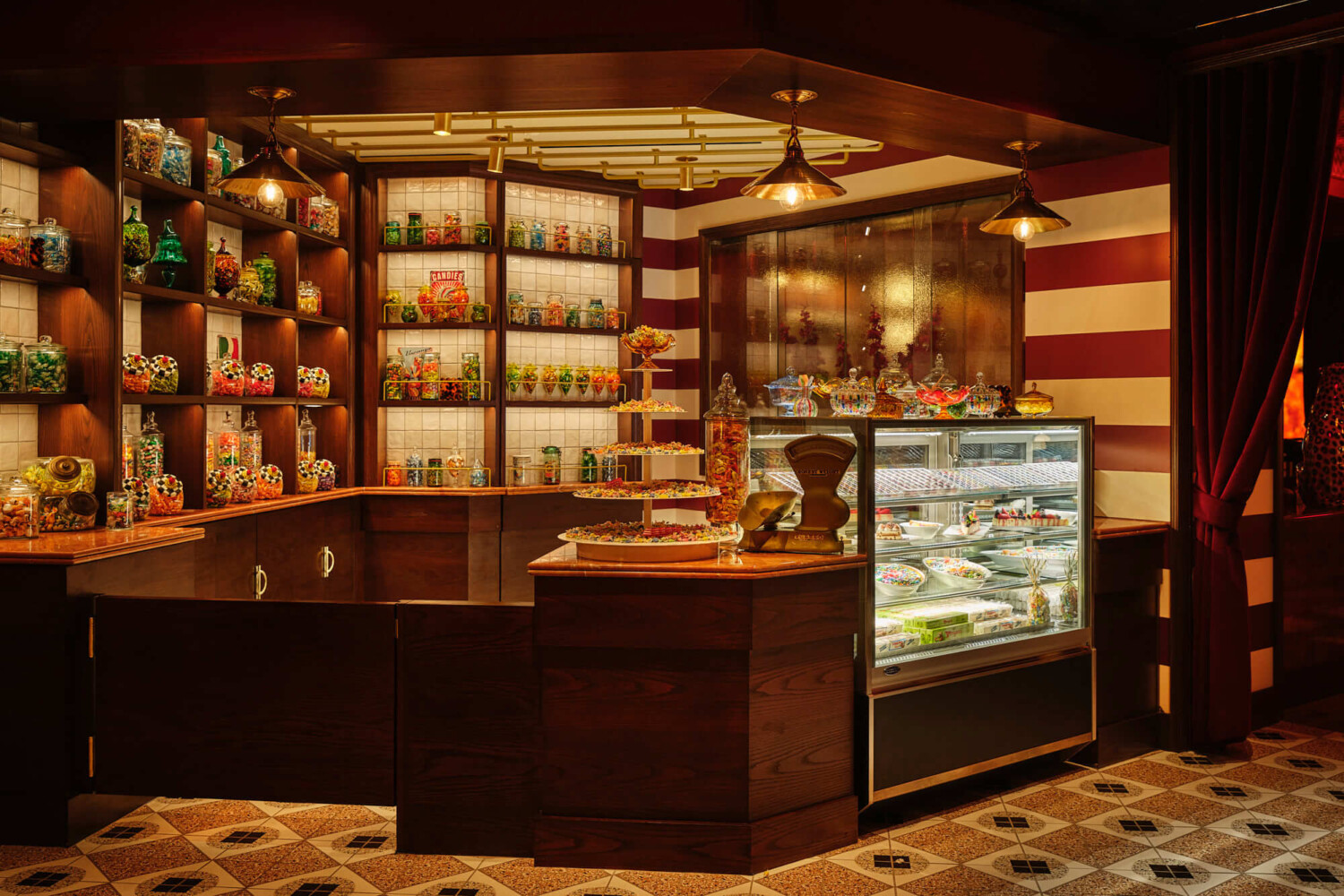 - Hidden speak easy lounge with a candy shop entrance